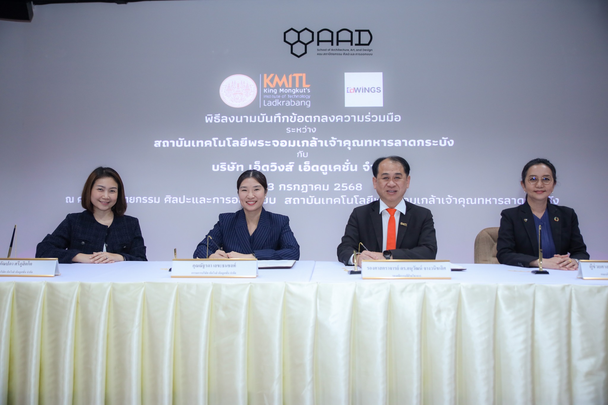 3 ก.ค. 68 สถาบันเทคโนโลยีพระจอมเกล้าเจ้าคุณทหารลาดกระบัง (สจล.) โดย รศ.ดร.อนุวัฒน์ จางวนิชเลิศ รองอธิการบดีฝ่ายวิชาการ ผู้แทนอธิการบดี และ คุณณัฐรดา เลขะธนชลท์ประธานกรรมการบริษัท เอ็ดวิงส์ เอ็ดดูเคชั่น จำกัด ร่วมลงนามบันทึกข้อตกลง ณ คณะสถาปัตยกรรม ศิลปะและการออกแบบ สจล.