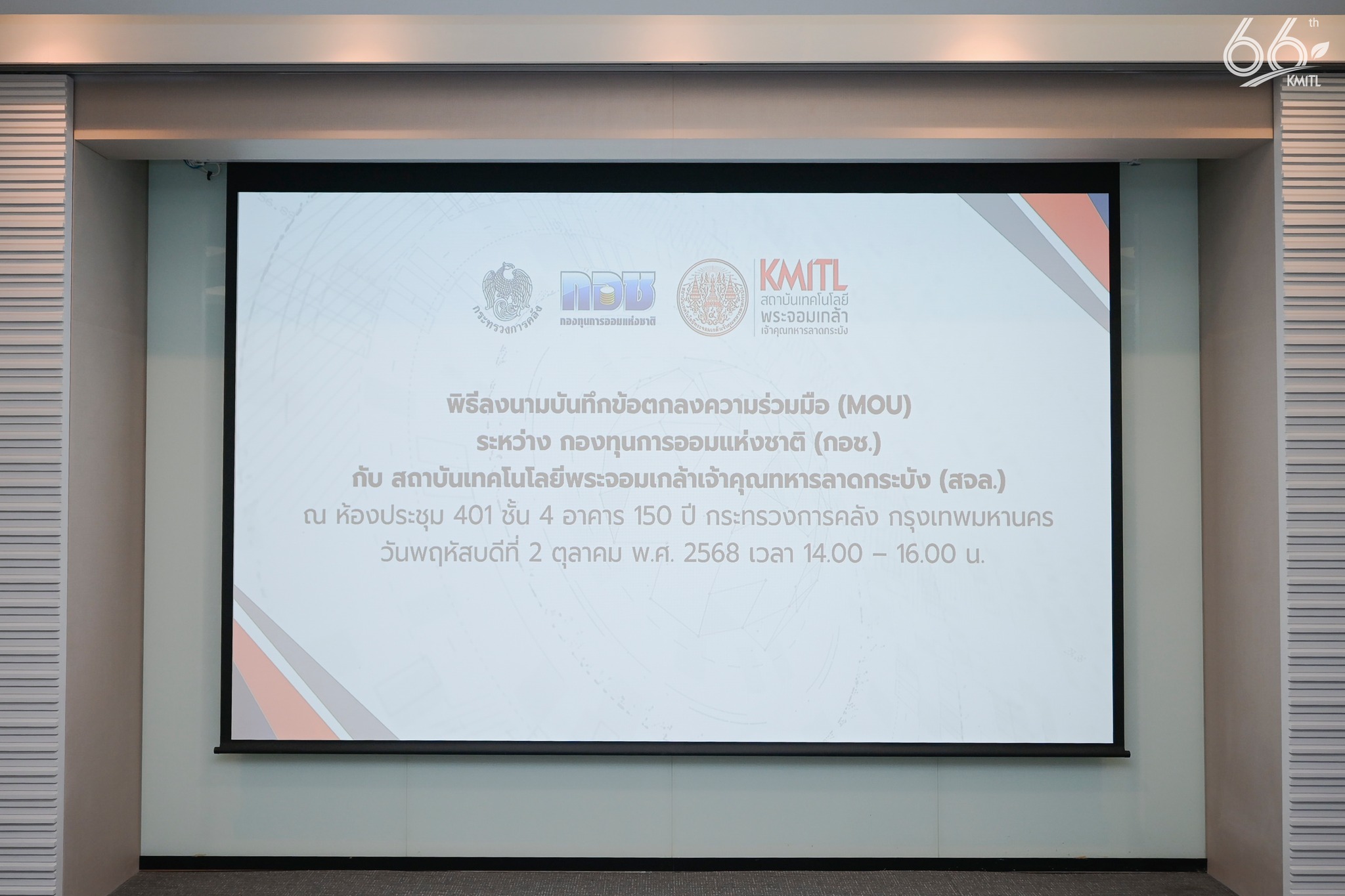 2 ต.ค. 68 สถาบันเทคโนโลยีพระจอมเกล้าเจ้าคุณทหารลาดกระบัง (สจล.) โดย รองศาสตราจารย์ ดร.คมสัน มาลีสี อธิการบดี และ คุณจารุลักษณ์ เรืองสุวรรณ เลขาธิการคณะกรรมการกองทุนการออมแห่งชาติ กองทุนการออมแห่งชาติ ทั้งนี้ได้รับเกียรติจากคุณธีรลักษ์ แสงสนิท รองปลัดกระทรวงการคลัง เป็นประธานในพิธีลงนามบันทึกข้อตกลง ณ ห้องประชุม 401 ชั้น 4 อาคาร 150 ปี กระทรวงการคลัง กรุงเทพมหานคร
