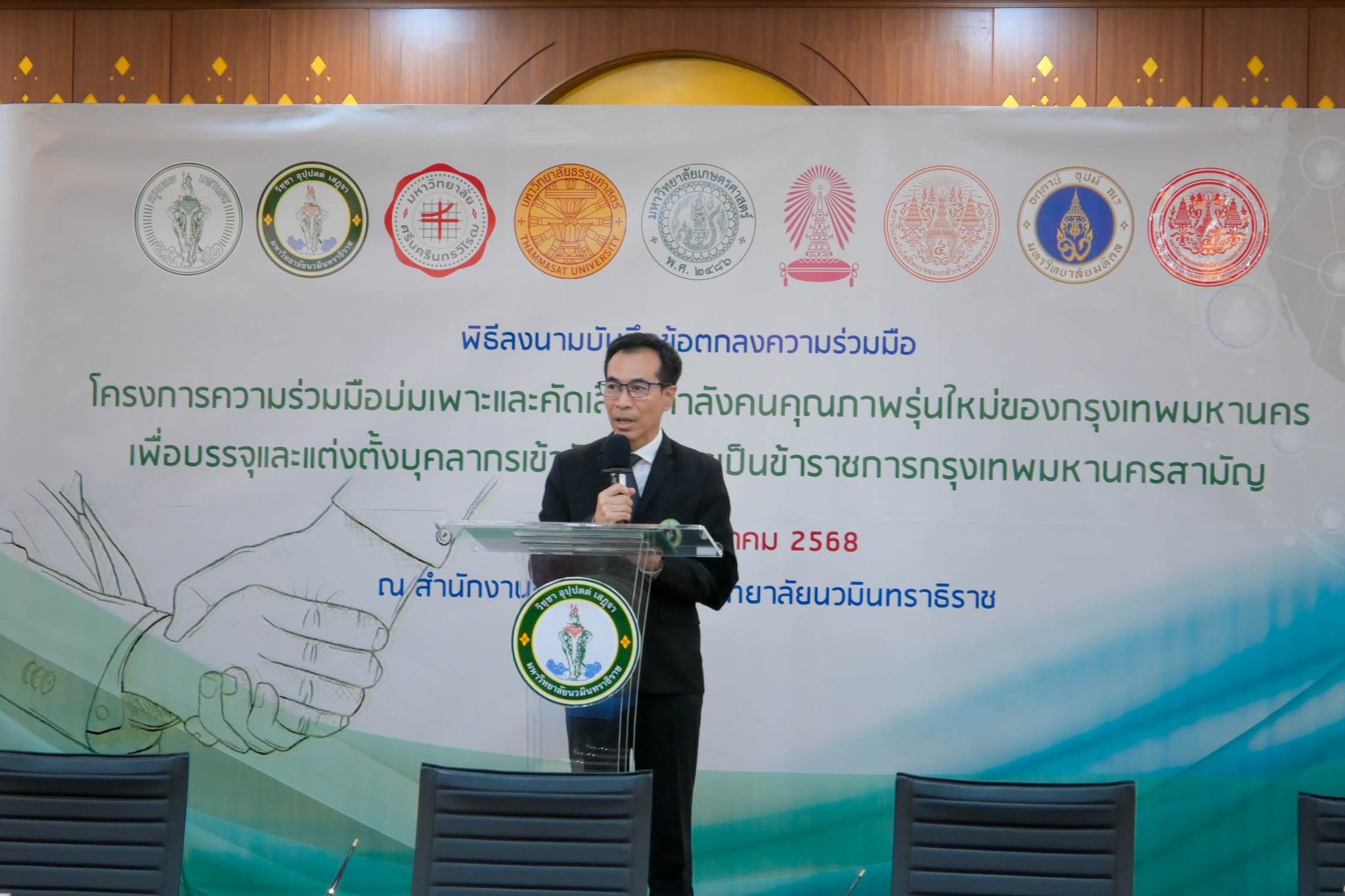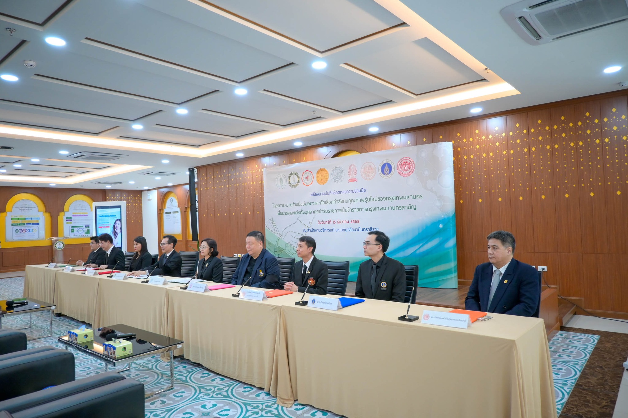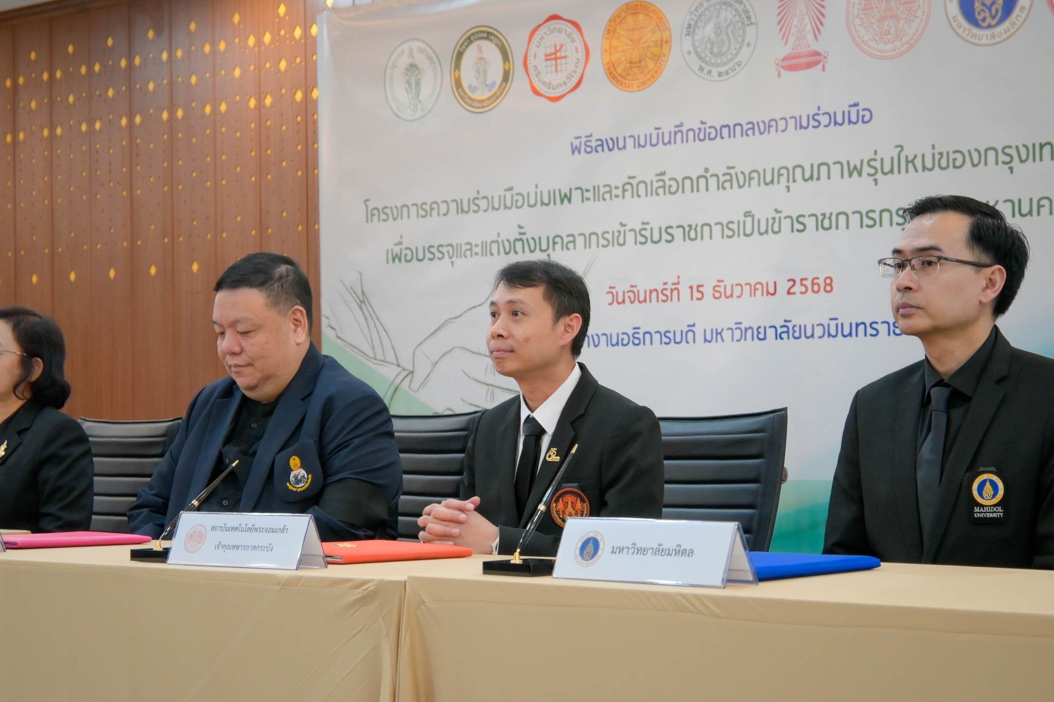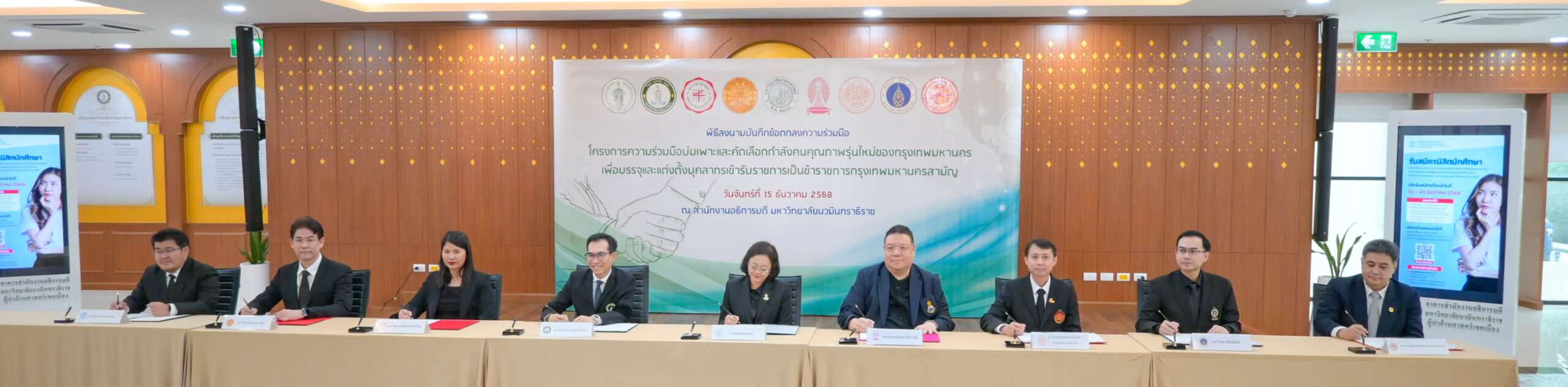 15 ธ.ค. 2568 สถาบันเทคโนโลยีพระจอมเกล้าเจ้าคุณทหารลาดกระบัง (สจล.) โดย รองศาสตราจารย์ ดร.ราชศักดิ์ ศักดานุภาพ ผู้ช่วยอธิการบดีฝ่ายวิชาการและประกันคุณภาพการศึกษา ผู้แทนอธิการบดี ร่วมลงนามบันทึกข้อตกลงทางวิชาการ พร้อมด้วยตัวแทนจากทั้ง 8 หน่วยงาน ได้แก่ 1) กรุงเทพมหานคร 2) มหาวิทยาลัยนวมินทราธิราช 3) มหาวิทยาลัยศรีนครินทรวิโรฒ 4) มหาวิทยาลัยธรรมศาสตร์ 5) มหาวิทยาลัยเกษตรศาสตร์ 6) จุฬาลงกรณ์มหาวิทยาลัย 7) มหาวิทยาลัยมหิดล และ 8) มหาวิทยาลัยเทคโนโลยีพระจอมเกล้าธนบุรี
