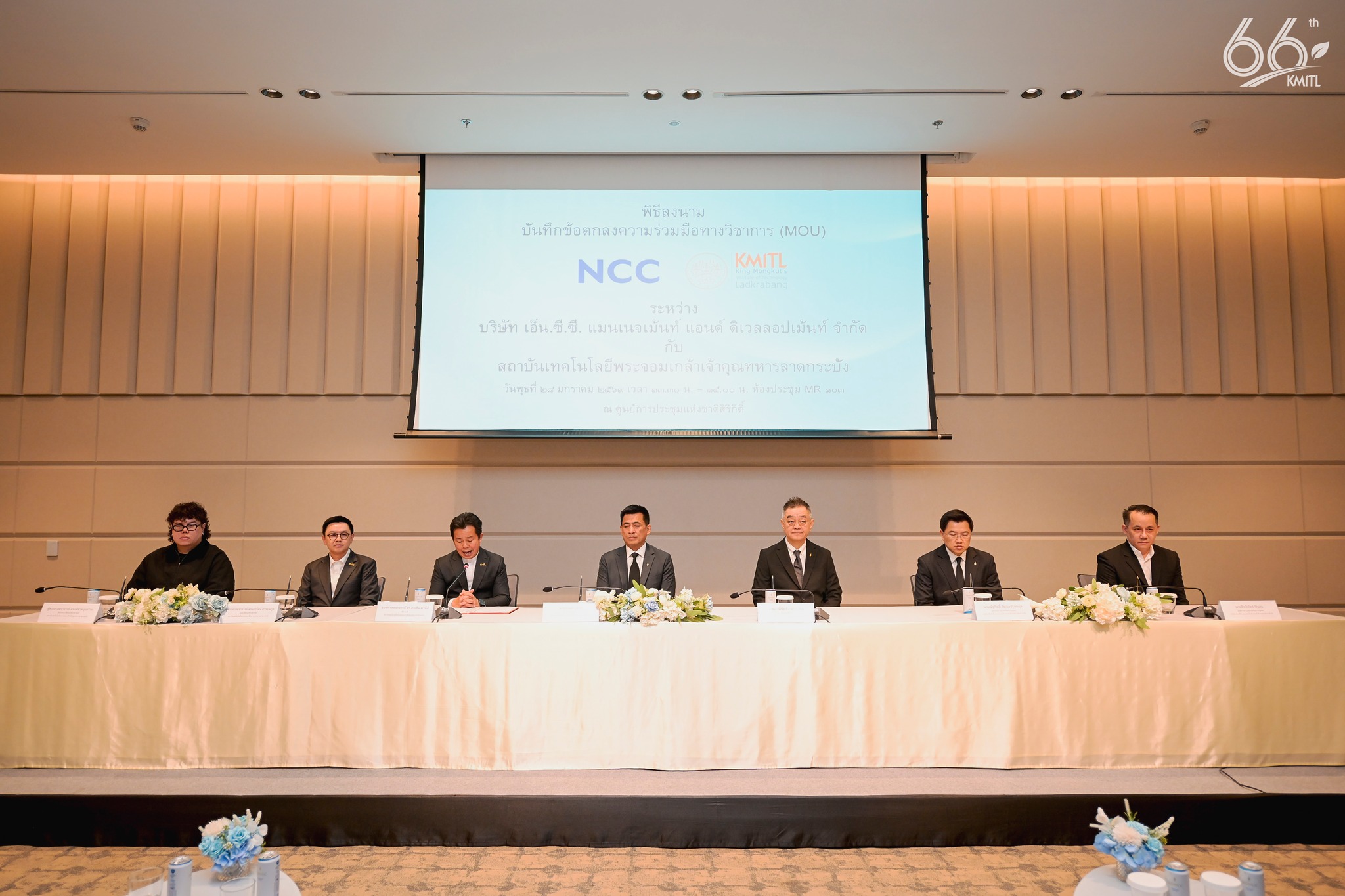 บริษัท เอ็น.ซี.ซี. แมนเนจเม้นท์ แอนด์ ดิเวลลอปเม้นท์ จำกัด นับได้ว่าเป็นองค์กรผู้นำที่มีบทบาทโดดเด่นอย่างยิ่งในอุตสาหกรรมการบริหารจัดการศูนย์ประชุมและนิทรรศการของประเทศไทย ความร่วมมือที่เกิดขึ้นในครั้งนี้เป็นการส่งเสริมและสนับสนุนการจัดกิจกรรมทางวิชาการ การประชุม และนิทรรศการที่เป็นประโยชน์ร่วมกัน รวมถึงการเปิดประตูแห่งโอกาสให้แก่นักศึกษา และบุคลากรของ สจล. ได้เข้าไปสัมผัสประสบการณ์การทำงานจริงในพื้นที่ของศูนย์การประชุมแห่งชาติสิริกิติ์ ซึ่งจะช่วยยกระดับทักษะวิชาชีพและการบริหารจัดการเทคโนโลยีสมัยใหม่ให้เท่าทันต่อการเปลี่ยนแปลงของโลก นอกจากนี้ยังร่วมกันพัฒนาหลักสูตร การวิจัยและพัฒนานวัตกรรมสำหรับการจัดการงานบริการในกลุ่มธุรกิจไมซ์ (MICE) ซึ่งจะเป็นปัจจัยสำคัญในการเสริมสร้างขีดความสามารถทางการแข่งขันของประเทศต่อไป